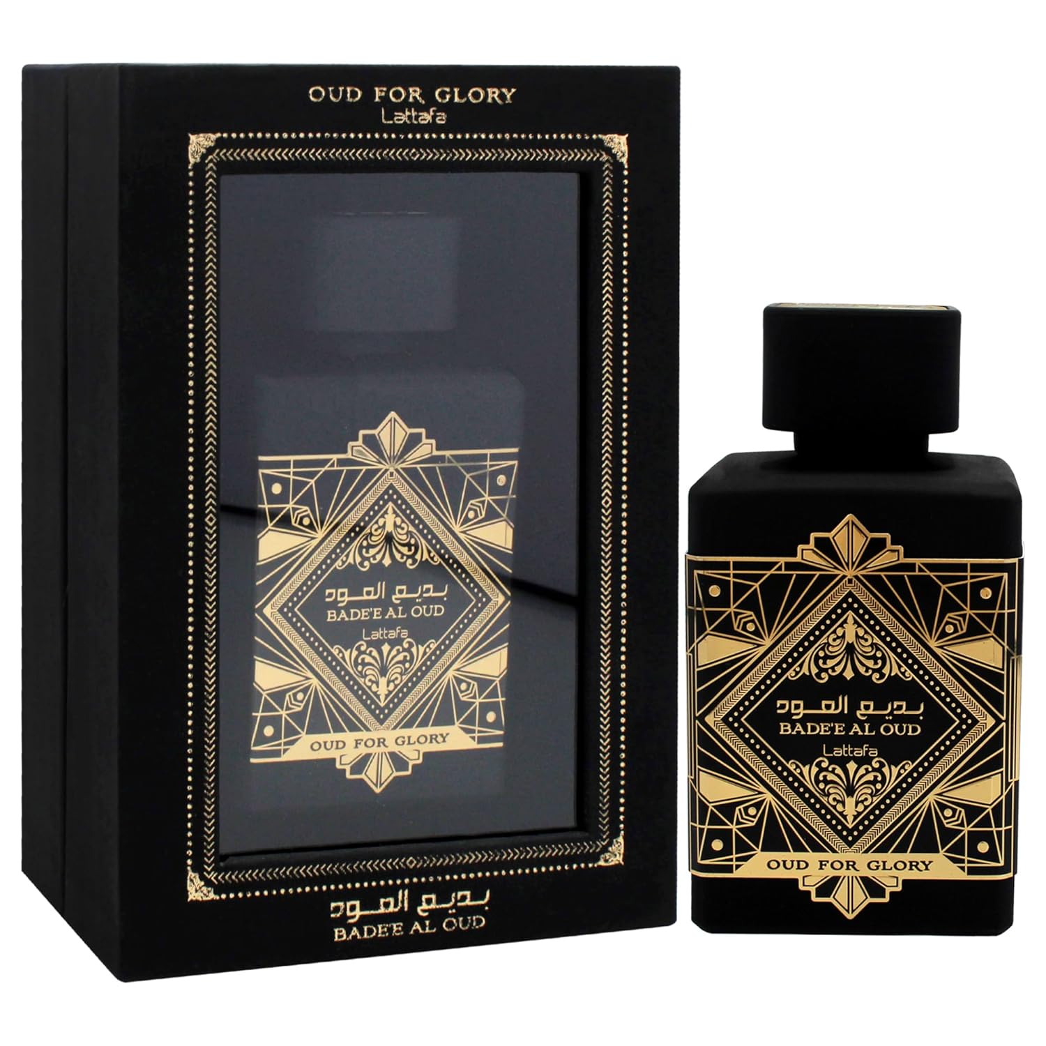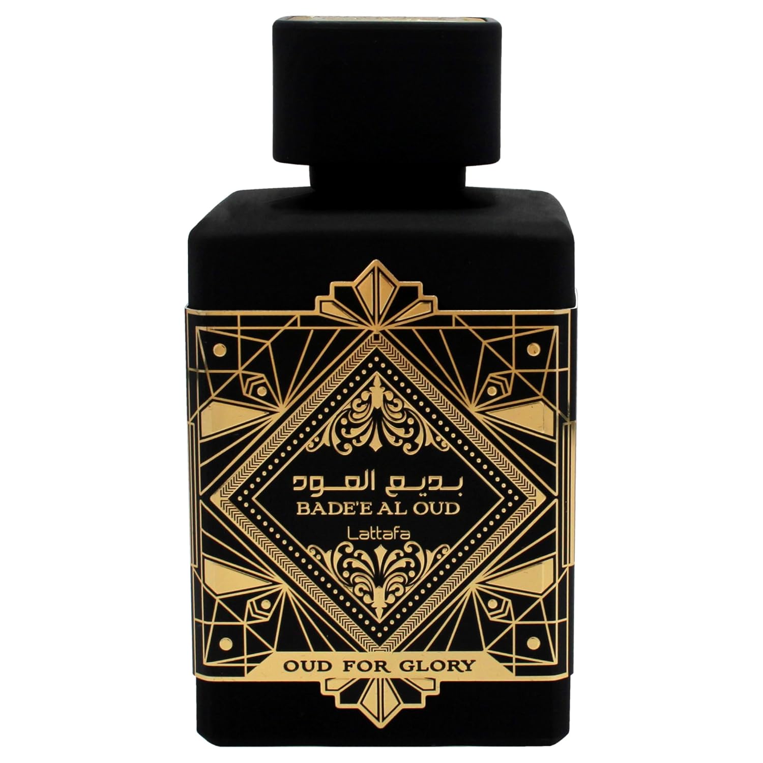 Bade'e Al Oud Oud for Glory by Lattafa Perfumes is an amber woody fragrance suitable for both women and men. Launched in 2020, this captivating scent opens with top notes of saffron, nutmeg, and lavender. The heart of the fragrance features rich agarwood (oud) and patchouli, while the base is a blend of agarwood (oud), patchouli, and musk.